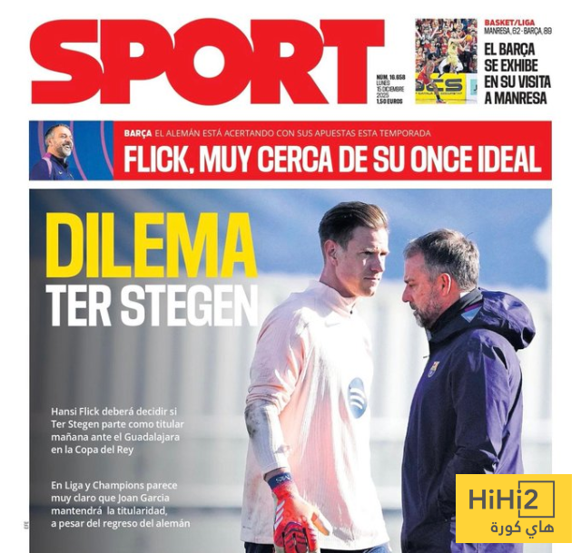 مرحبا كورة – تمحور غلاف صحيفة سبورت الكاتالونية اليوم الإثنين 15 ديسمبر، حول مستقبل الحارس الألماني مارك أندريه تير شتيجن مع برشلونة.