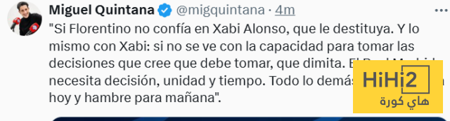 “إذا كان فلورنتينو لا يثق في تشابي ألونسو، فعليه أن يقيله. الأمر نفسه ينطبق على تشافي: إذا لم يشعر بأنه قادر على اتخاذ القرارات التي يعتقد أنه يجب عليه اتخاذها، فيجب عليه الاستقالة. ريال مدريد يحتاج إلى العزيمة والوحدة والوقت. أي حل آخر سيكون حلاً مؤقتًا سيؤدي إلى مشاكل طويلة الأمد”.