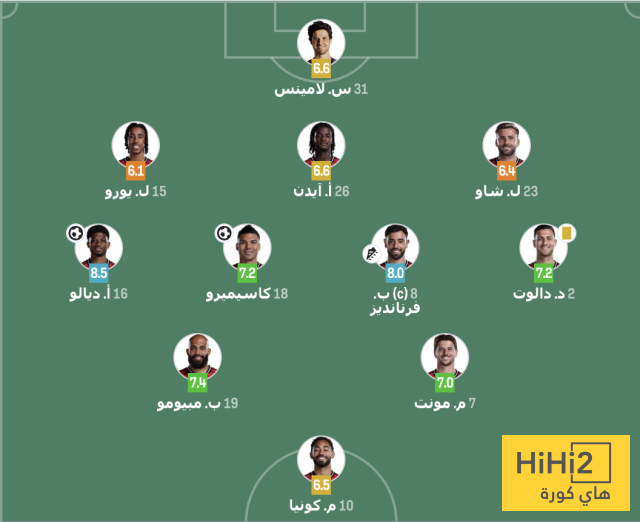 أعطى موقع Sova Score تقييمات جيدة للاعبي الشياطين الحمر بعد المستوى الذي ظهروا به في الشوط الأول من المباراة.