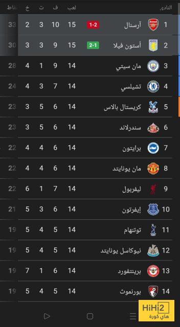 وإليكم ترتيب الدوري الإنجليزي بعد خسارة أرسنال أمام أستون فيلا: