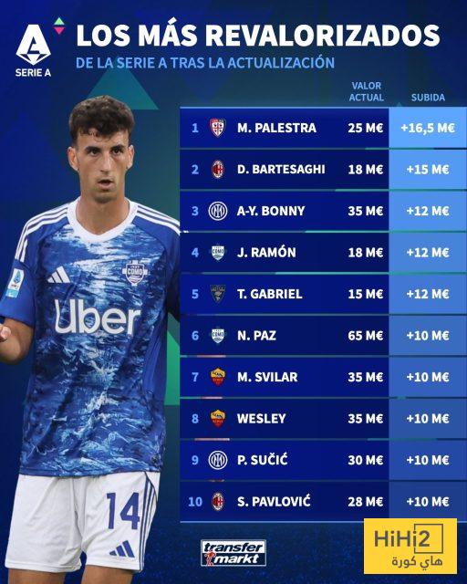 ارتفعت القيمة السوقية لجاكوبو رامون بمقدار 12 مليون يورو إلى 18 مليون يورو، بينما ارتفعت قيمة نيكو باز بمقدار 10 ملايين يورو إلى 65 مليون يورو.