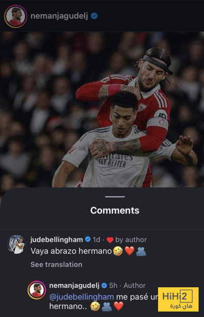 مرحبًا كورة – علق نجم ريال مدريد جود بيلينجهام على منشور للاعب إشبيلية نيمانيا جوديلي على منصة إنستجرام.