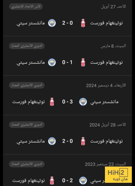 وفيما يلي نتائج آخر 5 مباريات بين مانشستر سيتي ونوتنجهام فورست: