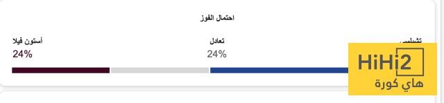 نسبة فوز تشيلسي 52%، وأستون فيلا 24%، ونسبة التعادل 24%.