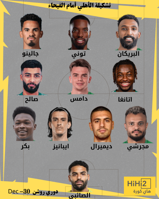 هاي كورة – كشف موقع هاي كورة عن التشكيلة المتوقعة للأهلي لمواجهة الفيحاء في دوري روشان السعودي للمحترفين، حيث سيلتقي الفريقان مساء الثلاثاء، حسب الأوقات الموضحة في جدول الموقع لكل دولة حول العالم.