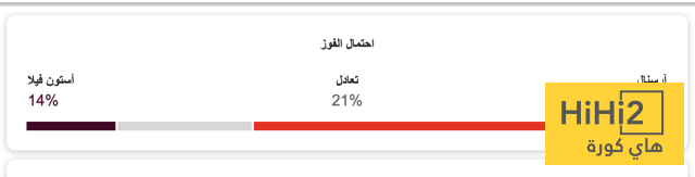 نسبة فوز أرسنال 65%، ونسبة فوز أستون فيلا 14%، ونسبة التعادل 21%.