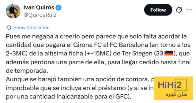 رفضت تصديق ذلك، لكن يبدو أن كل ما تبقى هو الاتفاق على المبلغ الذي سيدفعه جيرونا لبرشلونة (حوالي 2-3 مليون يورو) مقابل راتب تير شتيجن المرتفع جدًا (حوالي 15 مليون يورو)، والذي سيتنازل عن جزء منه، لإكمال إعارته حتى نهاية الموسم.