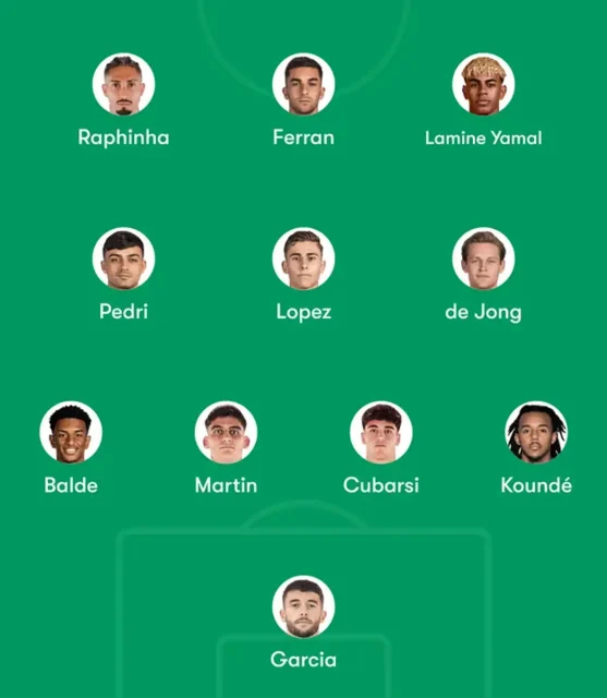 خط الوسط: بيدري، فيرمين لوبيز، فرينكي دي يونج
