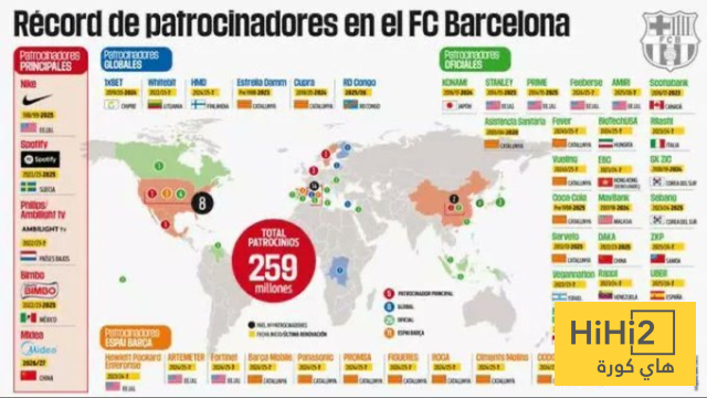 مرحبا كورا – كشفت صحيفة سبورت الكاتالونية عن دخل نادي برشلونة من حقوق الرعاية في الموسم الماضي 2024-2025.