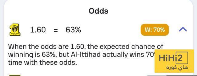 وبلغت نسبة فوز الاتحاد في المباراة 70% فيما توزعت الـ30% المتبقية بين التعادل والهزيمة.