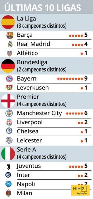 أهلا كورة – شهدت الدوريات الأوروبية الكبرى خلال المواسم العشرة الأخيرة، حالة واضحة من التباين في هوية الأبطال، إذ فرضت بعض الأندية هيمنة شبه كاملة، فيما شهدت دوريات أخرى تنوعا أكبر في الفائزين.
