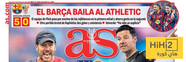 مرحبا كورة – سلطت صحيفة AS الإسبانية الضوء على فوز برشلونة الساحق أمام أتلتيك بلباو على غلافها اليوم الخميس 8 يناير 2026.