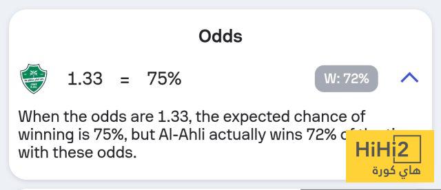 ووصلت نسبة فوز الأهلي في المباراة إلى 72% فيما توزعت الـ28% المتبقية بين التعادل والهزيمة.