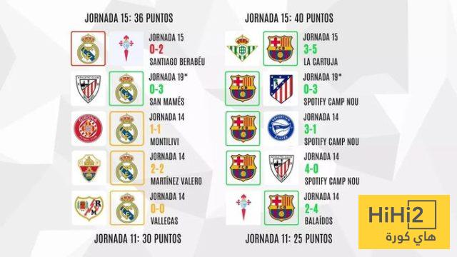 وفقد ريال مدريد النقاط تباعا بعد ذلك، بينما فاز برشلونة متصدرا الجولة الخامسة عشرة بفارق 4 نقاط عن الميرينغي.