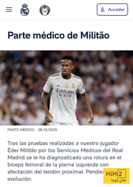 مرحبا كورة – كشف نادي ريال مدريد عن طبيعة إصابة لاعب ريال مدريد إيدير ميليتاو ومدة غيابه.