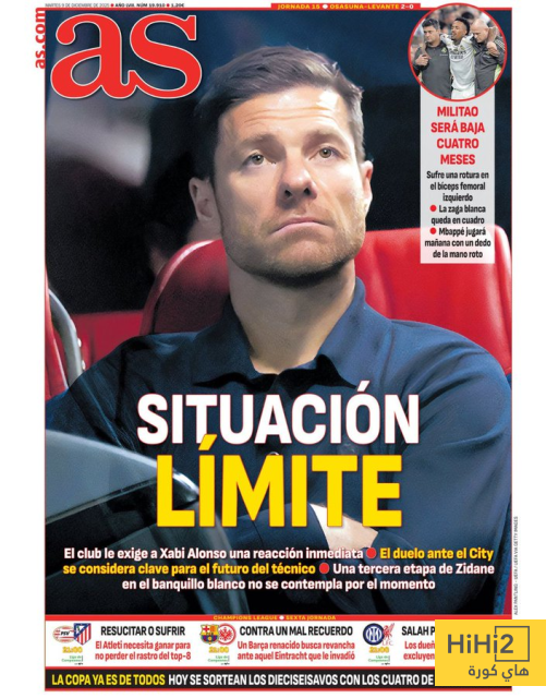 مرحبا كورة – ظهر تشابي ألونسو مدرب ريال مدريد على غلاف صحيفة AS الإسبانية اليوم الثلاثاء 9 ديسمبر 2025.