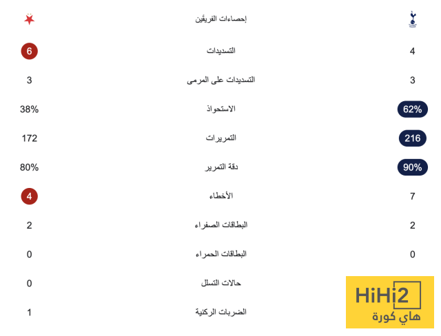 وتشير إحصائيات المباراة إلى تفوق توتنهام في العديد من جوانب المباراة.