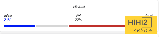 نسبة فوز ليفربول 57%، ونسبة فوز برايتون 21%، ونسبة تعادلهما 22%.