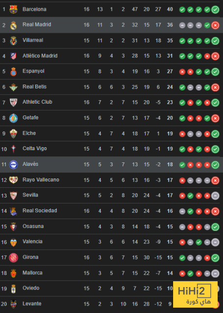 ويحتل ألافيس المركز الـ11 في الدوري الإسباني برصيد 18 نقطة.