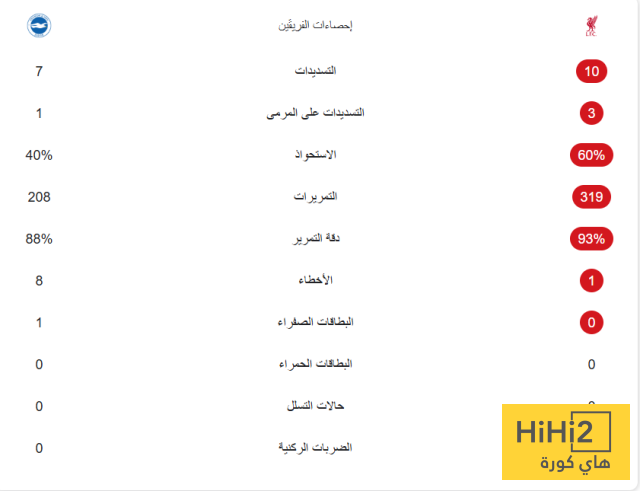 في الكورة : احصائيات الشوط الاول من مباراة ليفربول و برايتون